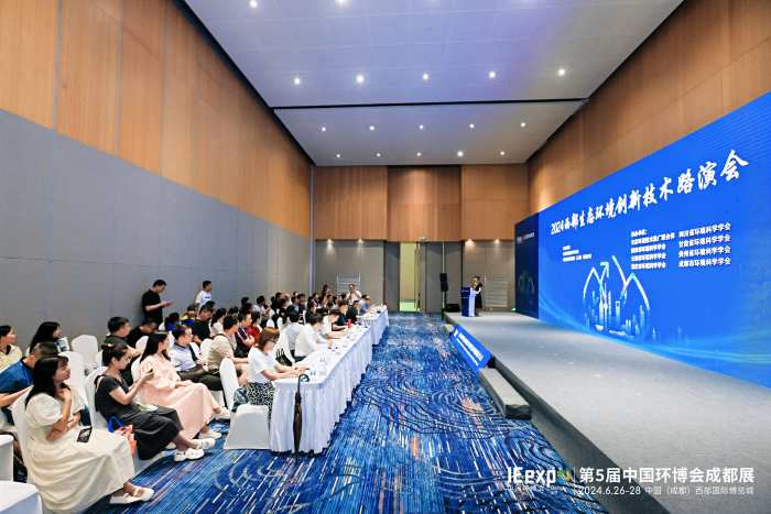 展会首日,由中国环境科学学会领衔主办,中国科协生态环境产学联合体、生态环境领域技术推广联合体、四川省环境科学学会、重庆市环境科学学会、陕西省环境科学学会、甘肃省环境科学学会、云南省环境科学学会、贵州省环境科学学会、成都市环境科学学会、成都环境投资集团有限公司等单位协办的“发展绿色新质生产力 构建绿色发展新格局”——2024生态环境创新技术大会于在中国(成都)西部国际博览城9号厅举办。